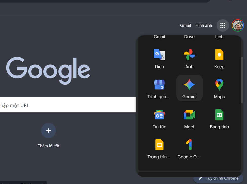 Tiếp tục mở 1 cửa sổ mới tại Gemini